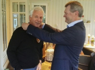Klubbens nye president fra 1. juli, Nils Andrew Mogstad, mottar presidentkjedet fra utgående president Tor Skovdal Friis.