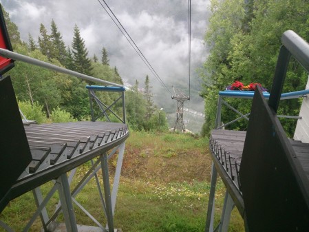 Vognene på Krossobanen er Blåbæret og Tyttebæret. Her er det sistnevnte som gjør unna kveldens siste tur med glade møtedeltakere. Foto: Inge O. Waage.