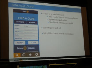 Fra Distriktsguvernørens presentasjon: En praktisk Rotary Club Locator App man enkelt kan laste ned på mobilen. Da er nærmeste klubb alltid "kun et tastetrykk unna"!