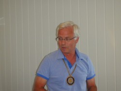 Etter at avtroppende president Nils Andrew Mogstad hadde oppsummert sitt presidentår var det klart for overlevering av presidentkjedet til den nye presidenten og etterfølgende takk og blomster på vegne av klubben fra Anne-Grethe Aanestad til den utgående presidenten. Fotos: Inge O. Waage.
