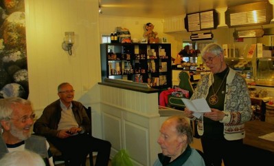 Bra frammøte og hyggelig lag på Bøen Kiosk og Kafè ved avslutningen av vårsemesteret i klubben. Foto: Inge O. Waage.