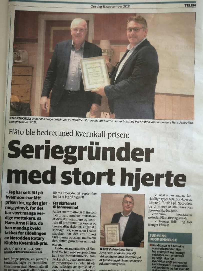 Avisen Telen var tilstede under tildelingen og omtalte på nettavisen og deretter i papirutgaven av avisen 8. september, 2021. De beskrev Flåto som ”Seriegründer med stort hjerte”. Han er nå inne i en meget hektisk fase, med bl.a. økning av kapasiteten ved bedriften Keytouch Technologies. Vi tillater oss å sakse fra Telens Åslaug Birgitte Græsvold sin omtale av tildelingen: