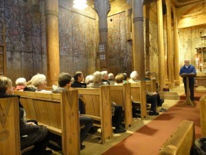 Mange var møtt fram for å høre Olav Sem sitt foredrag i Heddal Stavkirke etter pristildelingen. Foto: Inge O. Waage.