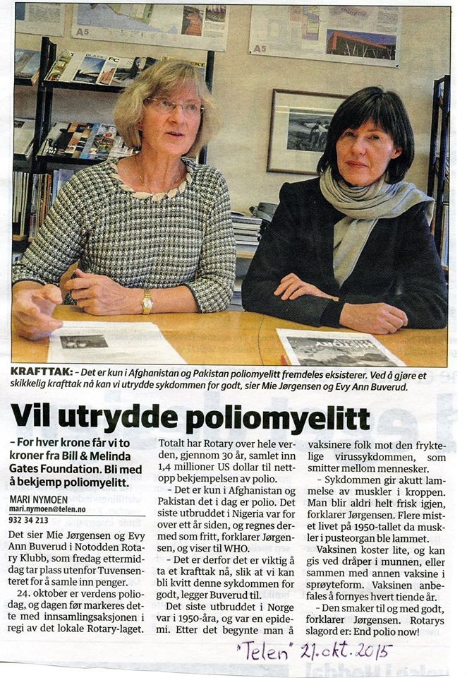 I forbindelse med verdens poliodag den 24. oktober, 2015 gjennomførte Notodden Rotaryklubb en innsamlingsaksjon ved Tuven Senteret fredag ettermiddag 23. oktober.