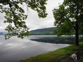 Hydroparkens beliggenhet må kunne sies å være meget fin, der den strekker seg helt til Heddalsvannet. De gamle granittblokkene fra prosesstårnene er blitt gjenbrukt som "kantstein" i skråningen mot vannet. De er godt synlige når man går en tur langs vannfronten i Hydroparken. En overskyet himmel og lite lys, klarte likevel ikke å ødelegge idyllen i skumringstimen denne mandagskvelden. Foto: Inge O. Waage