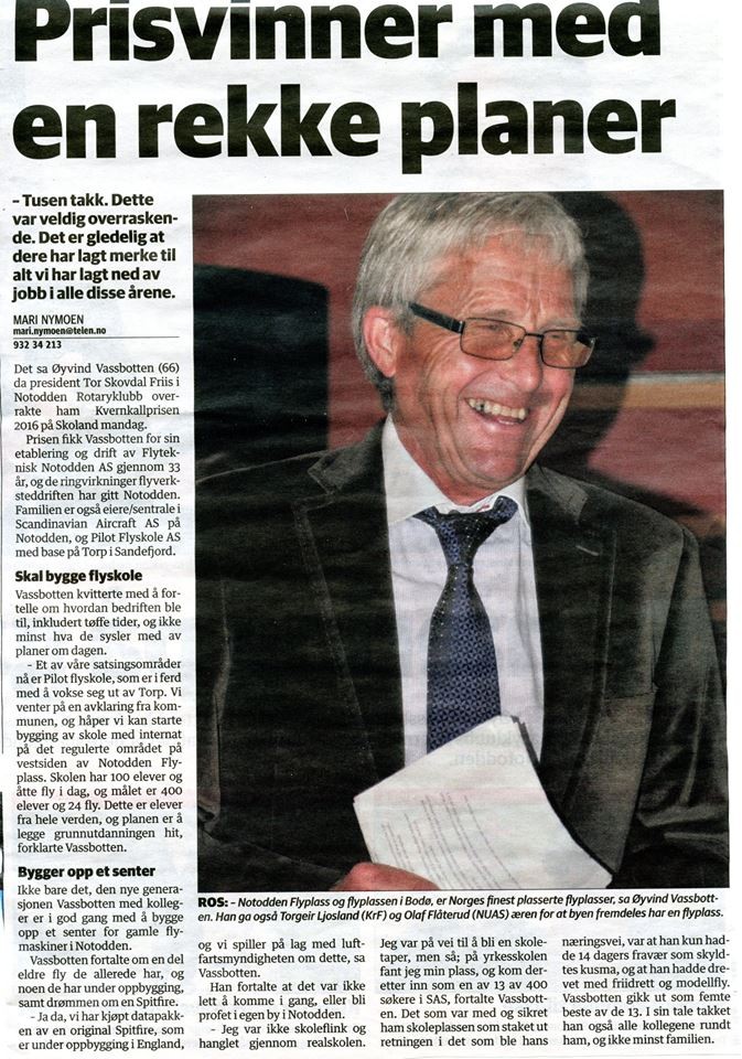 Det hersker ingen tvil om at valget også denne gangen falt på en person som i aller høyeste grad fortjente en slik ære og oppmerksomhet. Øyvind Vassbotten kvitterte for prisen på en inspirert og meget underholdende måte. Ingen tvil om at det har vært både oppturer og nedturer, så vel for Notodden Flyplass som hans virksomhet. Les mer om dette i lokalavisen Telens utmerkede artikkel (ved å klikke på bilde 2 og 3).
