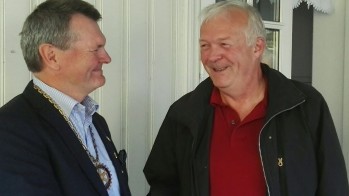 Over: Nytt medlem Per Christian Voss ønskes velkommen av President Tor Skovdal Friis.