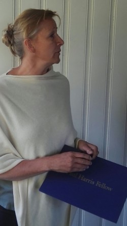 Under: T.v.: President Tor Skovdal Friis med Signe Hordvei. T.h.: Signe Hordvei takker for Paul Harris utmerkelsen.