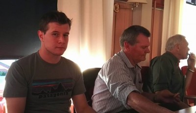 Utvekslingsstudent Cris har funnet sin plass ved siden av avgåtte president Tor Skovdal Friis og kasserer Aasmund Landsverk.