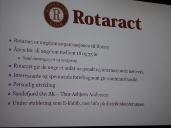 Rotaract, klubben for de som er i yngste laget for vanlig Rotaryklubb, har fått økt aktualitet i vårt distrikt ved at Thor Asbjørn Andersen, har grepet fatt i dette - vel å merke sammen med "vår egen" Lene Friis!