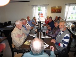 Bra frammøte og hyggelig lag på Bøen Kiosk og Kafè ved avslutningen av vårsemesteret i klubben. Foto: Inge O. Waage.