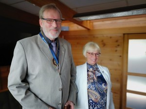 Bildet over: Utgående president Lise Wiik overrekker presidentkjedet til sin etterfølger Leif Rømcke. Foto: Svein Aanestad.